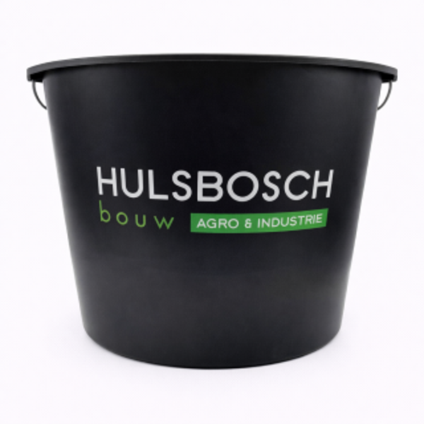 Zwarte bedrukte emmer van 12 liter met logo-opdruk naar keuze.