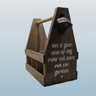 Deze houten biertray is de perfecte geschenkverpakking voor drankenhandelaars. Geschikt voor 6 flesjes bier of frisdrank, en volledig aan te passen met een gepersonaliseerde boodschap. Ideaal voor relatiegeschenken, evenementen of promoties. Maak indruk op je klanten met deze unieke en praktische verpakking!