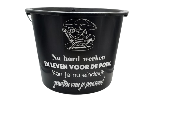 emmer bedrukt 12 l :Na hard werken..... Pensioen ( Kikker)
