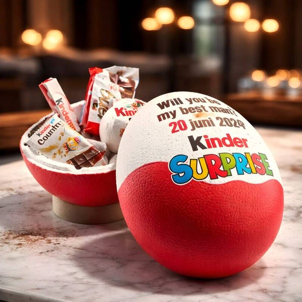 Dit gepersonaliseerde Surprise Ei voor volwassenen is geen gewoon cadeau, maar een blijvende herinnering aan een belangrijke vraag.