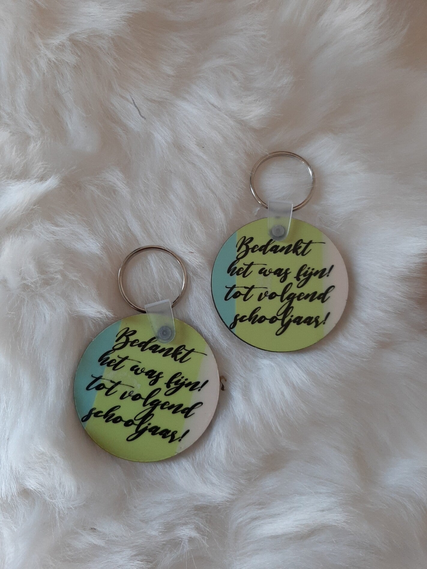 Deze sleutelhanger van mdf is bedrukt, met lichte achtergrondkleuren en meet Ø 5 cm . Word geleverd met ring.